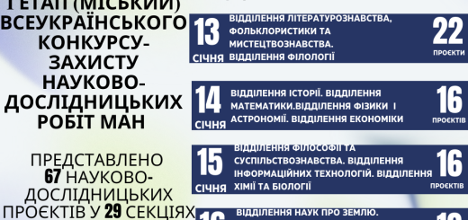 Ознайомитися із відділеннями та секціями МАН ви можете на сайті НЦ МАНУ за посиланням: https://man.gov.ua/contests/olympiad/konkurs-zahist-naukovo-doslidnicskih-robit-uchniv-chleniv-man/sections/perelik-sekcij-ta-oriyentovni-naukovi-napryami